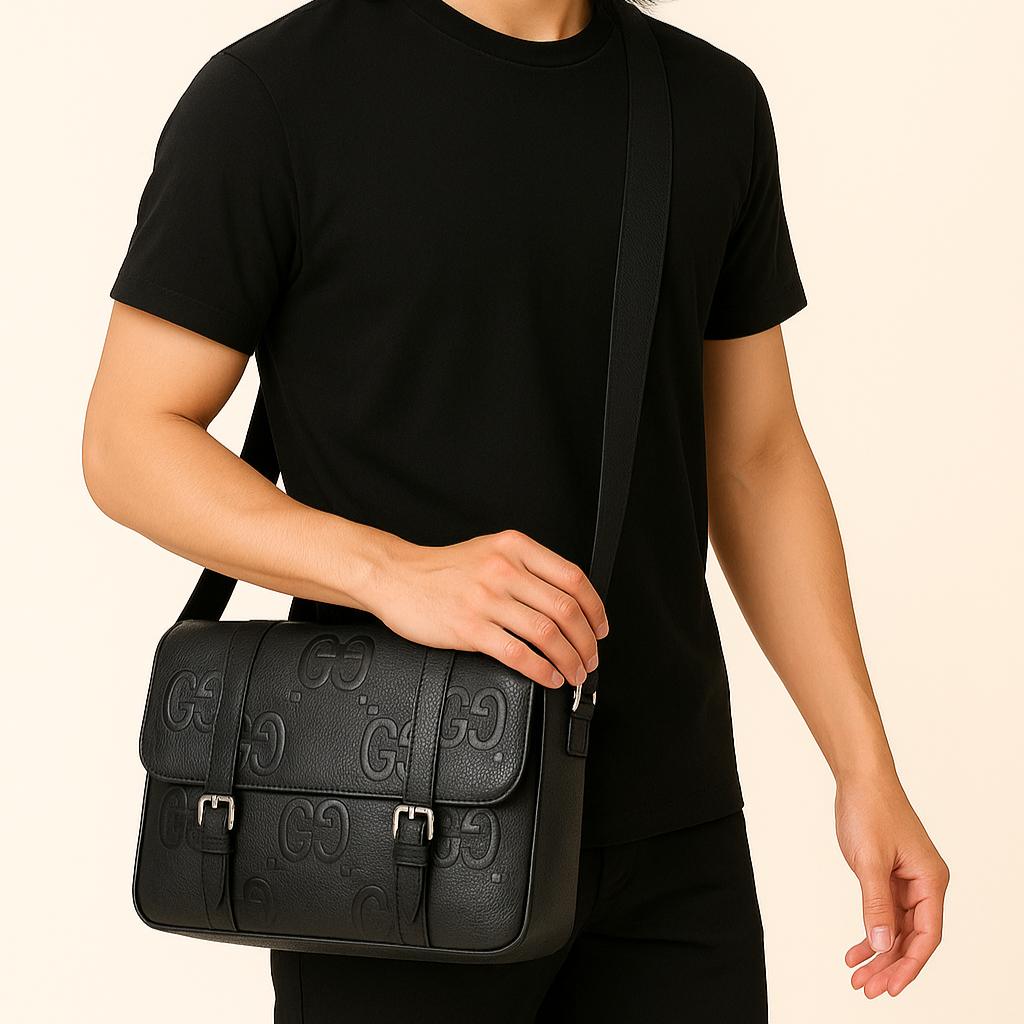 GG Emblem Small Nylon Crossbody Bag - Black