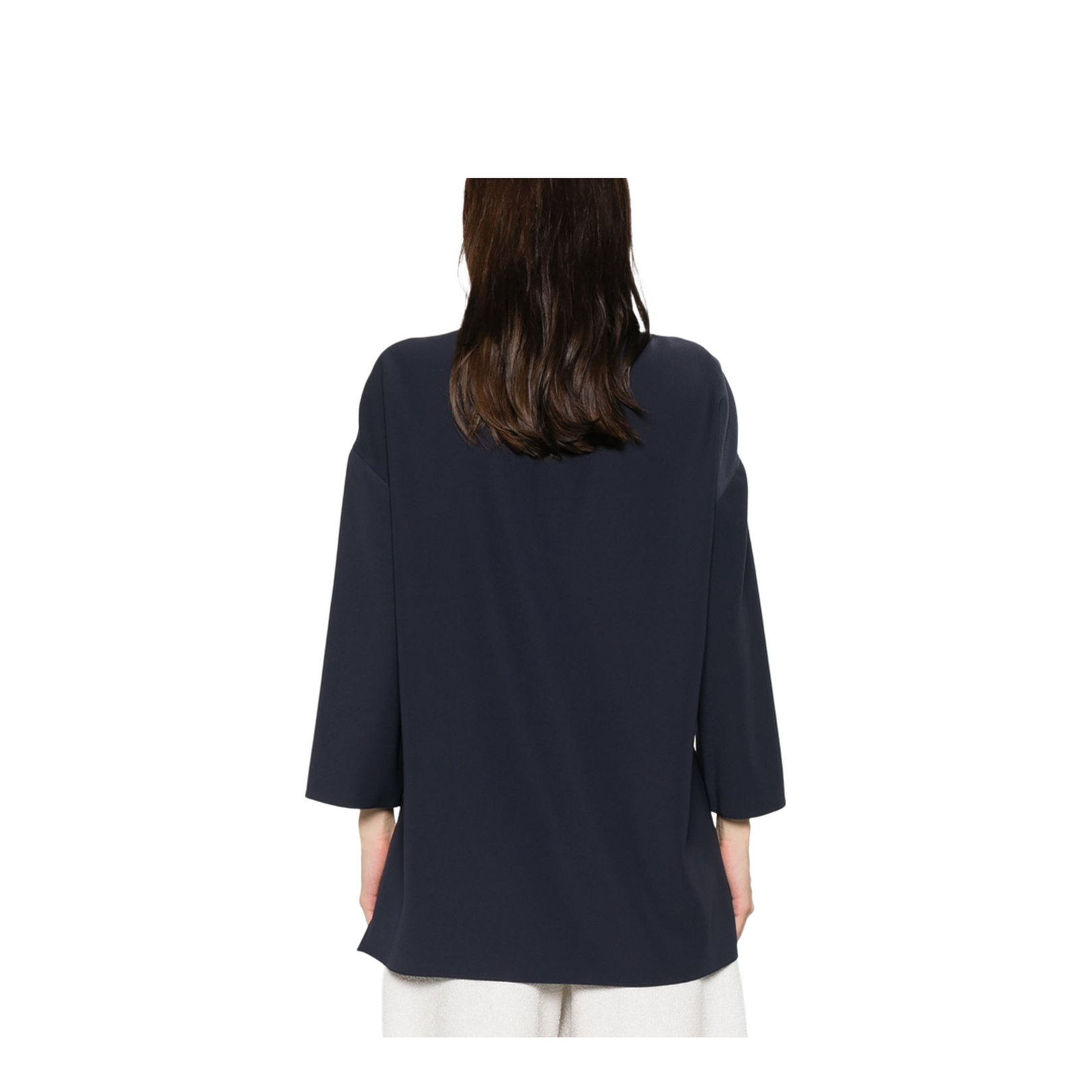 This stunning piece features a rich oxford blue hue that brings a fresh perspective to any ensemble. The fabric composition includes 100% polyester combined with a hint of elastane (95% polyester, 5% elastane), ensuring a comfortable fit that flatters your silhouette. The model, standing at 175 cm and wearing a size 40 (IT), showcases the blouse's true-to-size fit, making it easy for you to select your regular size.