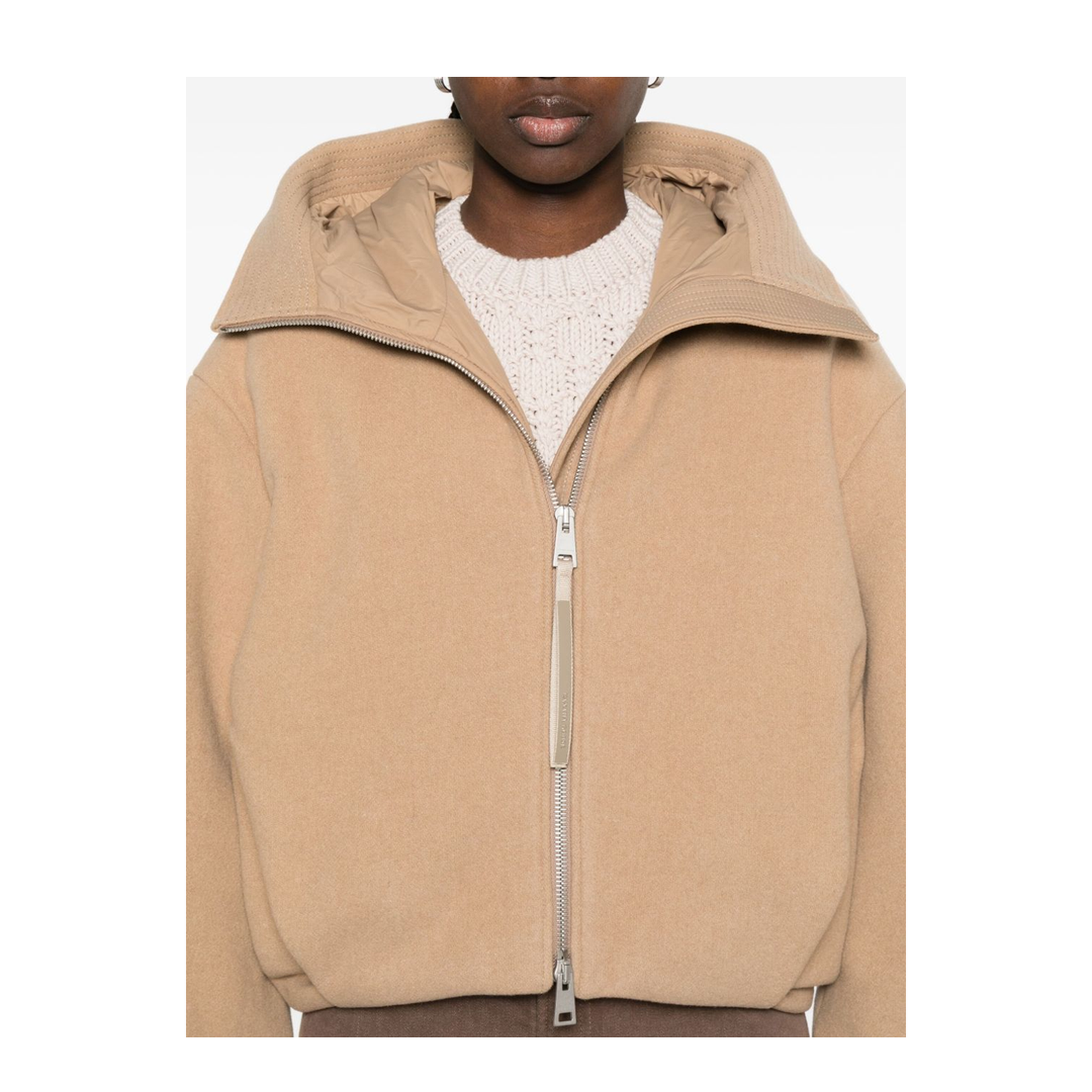 Elevate your outerwear collection with the Natural Chilliwack Bomber Jacket from the esteemed brand Canada Goose. This luxurious bomber jacket is a perfect blend of style, functionality, and eco-conscious design. Crafted from a premium beige wool blend, this jacket not only showcases exquisite craftsmanship but also reflects a commitment to sustainable fashion.