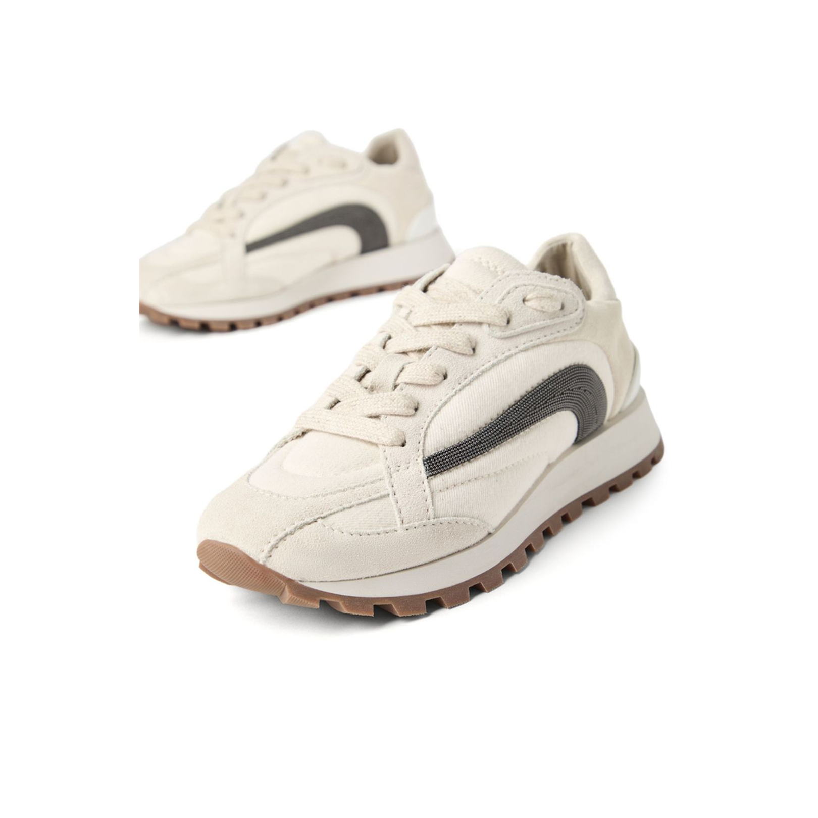 These Suede Runners feature a heel height of 2.5 cm, striking the perfect balance between elegance and ease of wear. The white panelled design offers a fresh and modern aesthetic, making them an ideal choice for both casual outings and elevated occasions. The front lace-up fastening not only adds a touch of practicality but also allows for a customizable fit, ensuring you feel your best with every step.