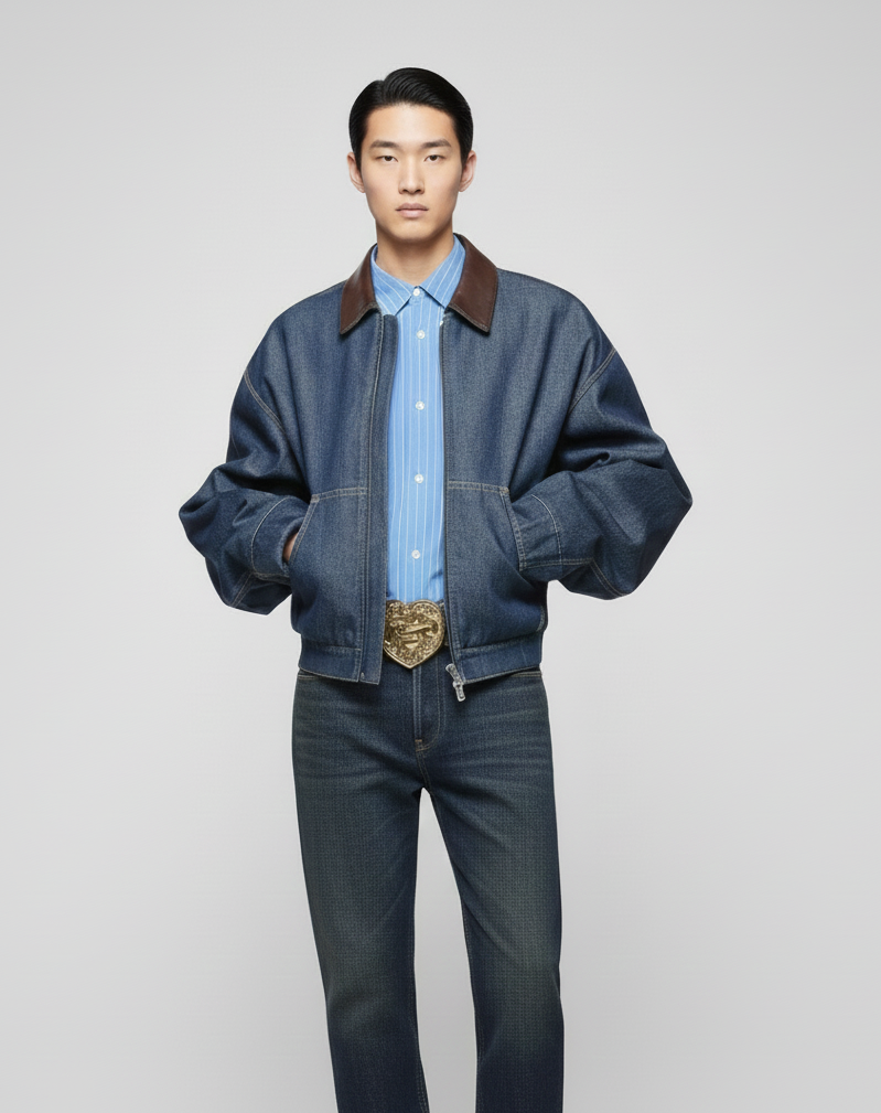 Single-breast Cotton Jersey Jacket in Dark Blue